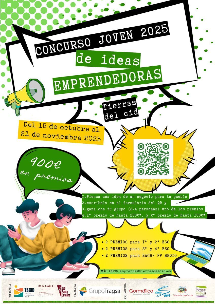 La Asociación Tierras Sorianas del Cid ha abierto una nueva edición del Concurso de Ideas Emprendedoras Jóvenes 2025, dirigido al alumnado de Educación Secundaria y Bachillerato de los institutos de la comarca.