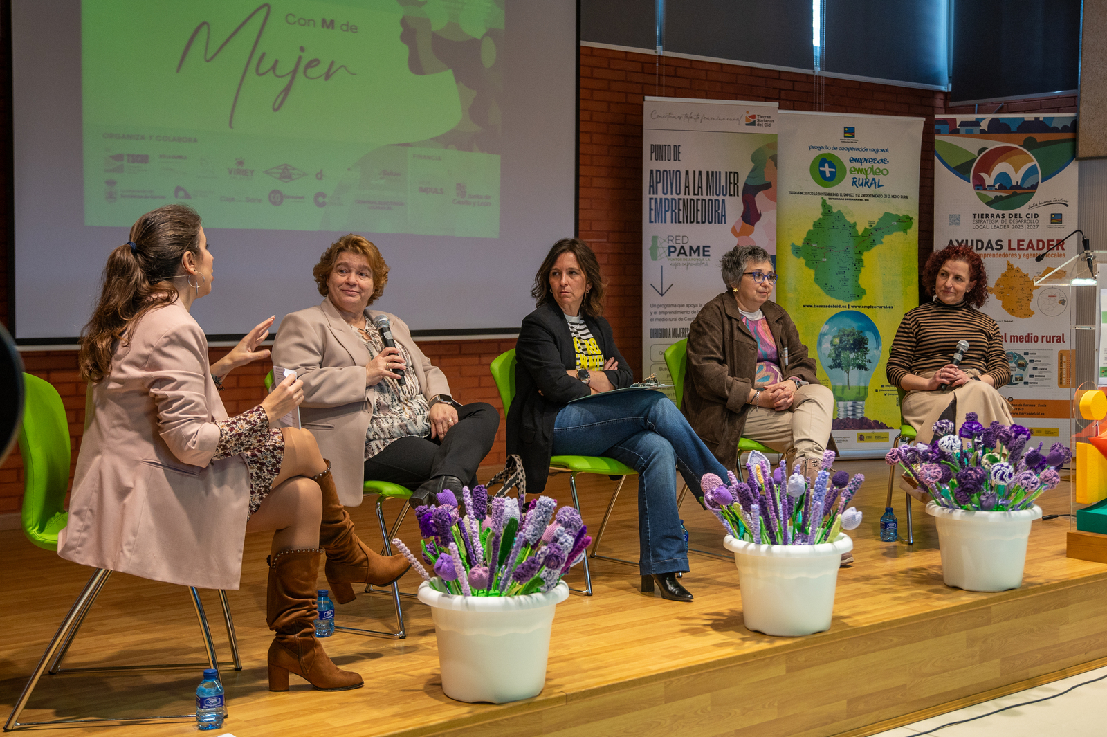 Durante la conversación, las participantes compartieron sus trayectorias profesionales, abordando cuestiones clave como el inicio de su carrera profesional, la necesidad de diversificar o de aprovechar las oportunidades del medio rural, los beneficios de emprender a la hora de conciliar o desarrollar la creatividad personal, el papel del entorno familiar y los desafíos a los que se enfrentan como mujeres empresarias.
