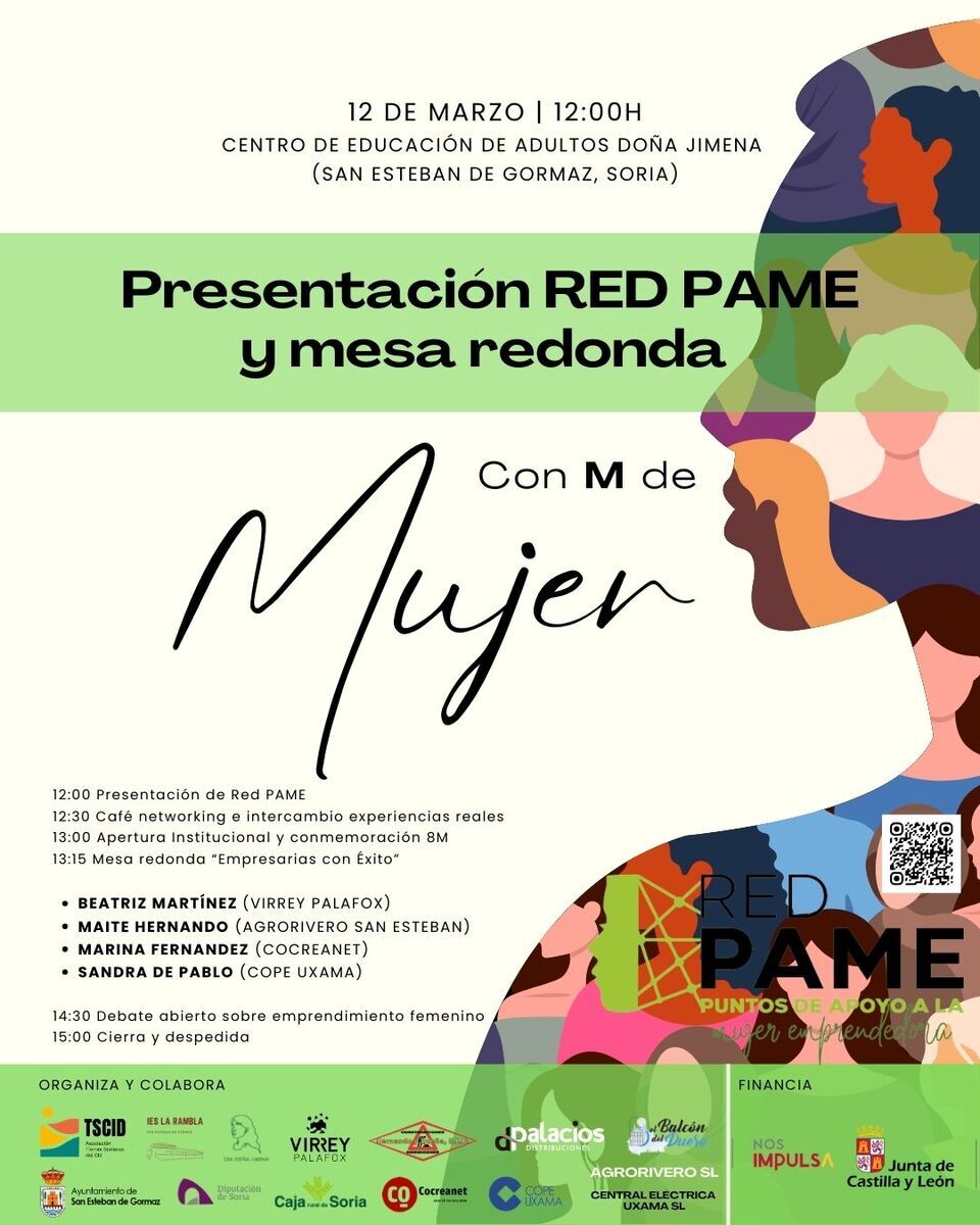 Este encuentro está forma parte de la iniciativa de la Red PAME de la Junta de Castilla y León y se organiza en colaboración con el IES La Rambla, el Centro de Educación de Adultos Doña Jimena y el Ayuntamiento de San Esteban de Gormaz, reforzando el compromiso conjunto con el talento femenino rural y el desarrollo sostenible del territorio.